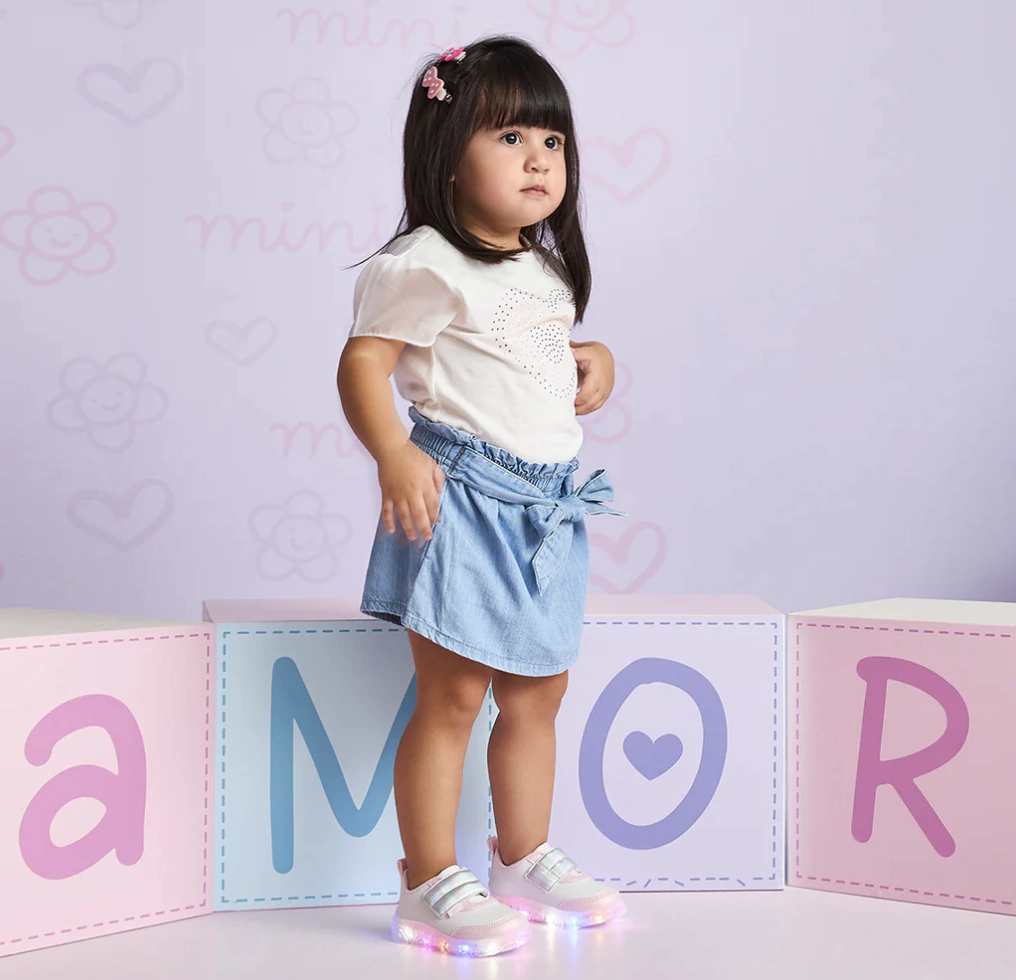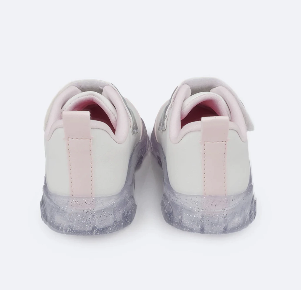 Tênis de led infantil em sintético branco, com recortes rosa e tira superior em matelassê comfy, moderno e divertido para os pezinhos! Forro interno que auxilia na absorção do suor e espuma no calcanhar para mais conforto. Tênis infantil feminino com palmilha anatômico, para maior conforto e cuidado nos primeiros passinhos! Tênis infantil fácil de calçar com abertura através de velcro na parte frontal, dando autonomia para as meninas e facilitando o dia a dia das mamães! Solado translúcido emborrachado com detalhe de borboletas, leve e antiderrapante, para a segurança nas brincadeiras. Led blindado no solado com cores fortes e brilho intenso!